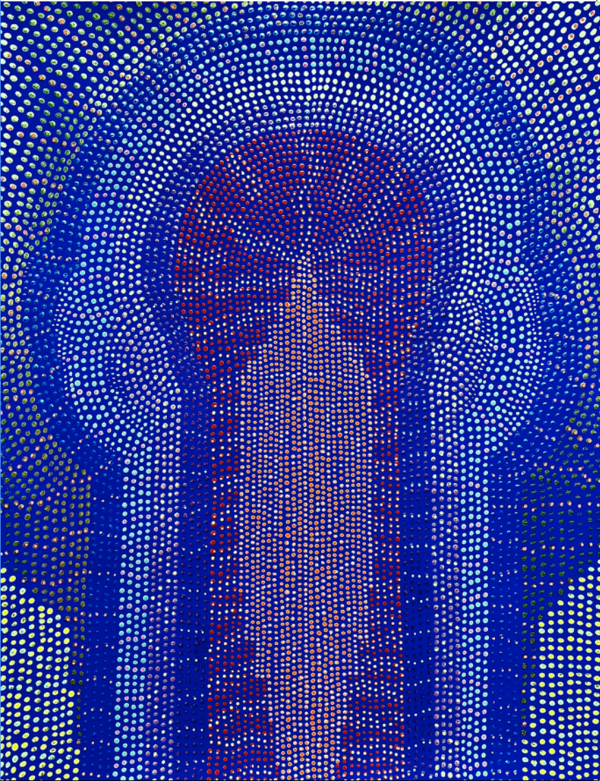 In the heart of his meditative collection lies the Aura of Guadalupe series, a visual symphony inspired by the iconic imagery of Our Lady of Guadalupe. Rather than merely replicating historical depictions, Michael infuses the paintings with a vibrant palette and meticulous layering of dots, a technique that defies the limitations of digital platforms. The result is an immersive experience where hues and auras intertwine to create a meditative ambiance.